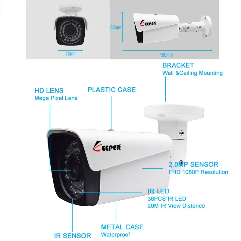 New Keeper HD 1080P 2MP AHD Security Camera Outdoor Waterproof Array infrared Night Vision Metal Bullet