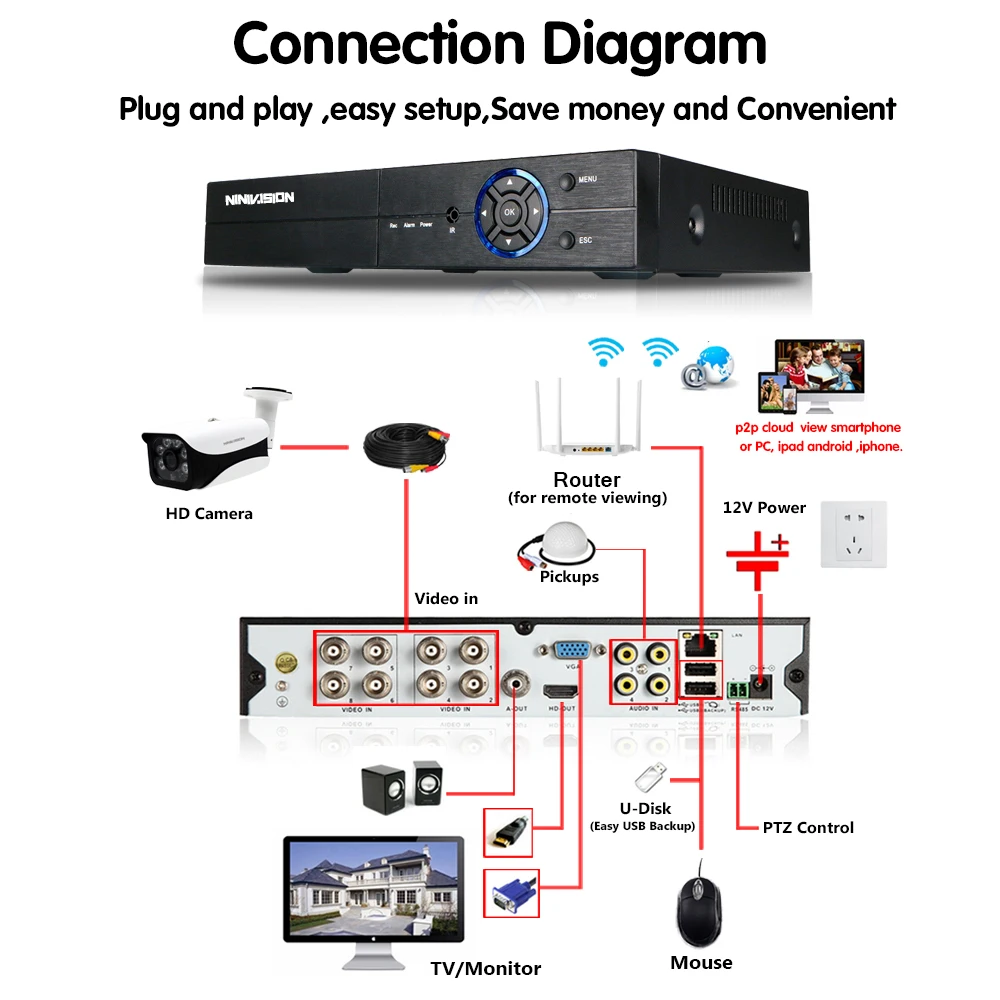 Best New Super Full HD 8CH AHD 4MP Home Outdoor indoor CCTV Camera System 8 Channel 6 Array Surveillance