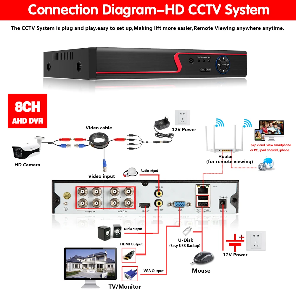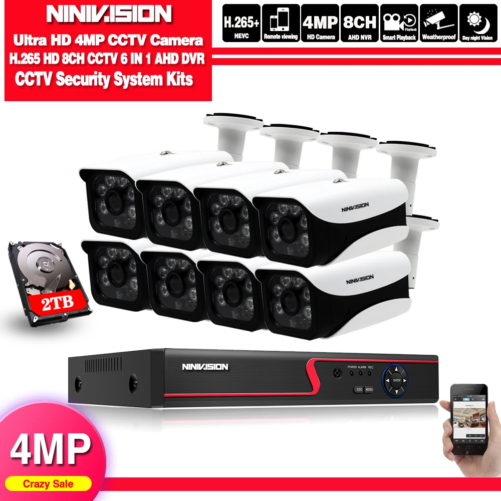 New 4mp HD CCTV System 8CH AHD DVR Kit 8PCS 4.0mp 2560*1440 6*Array LEDS Security Camera Outdoor Survei