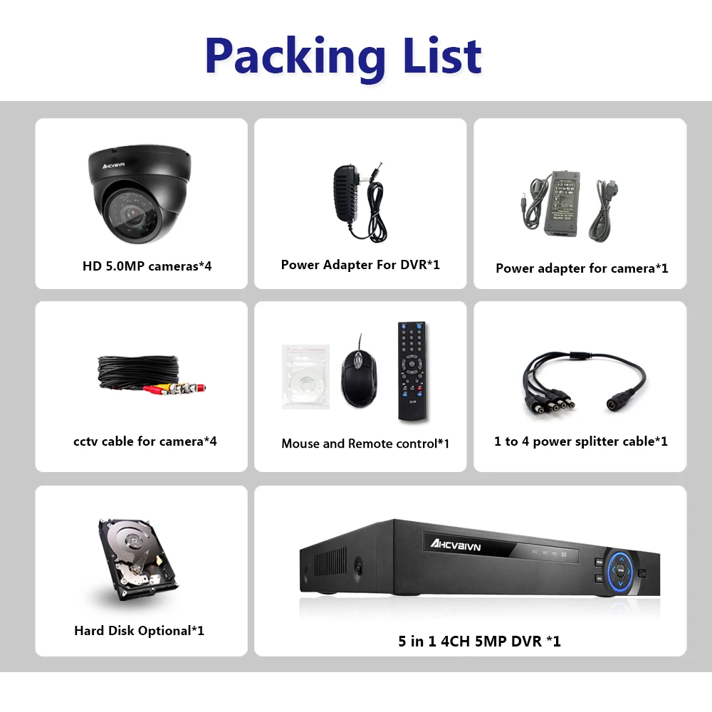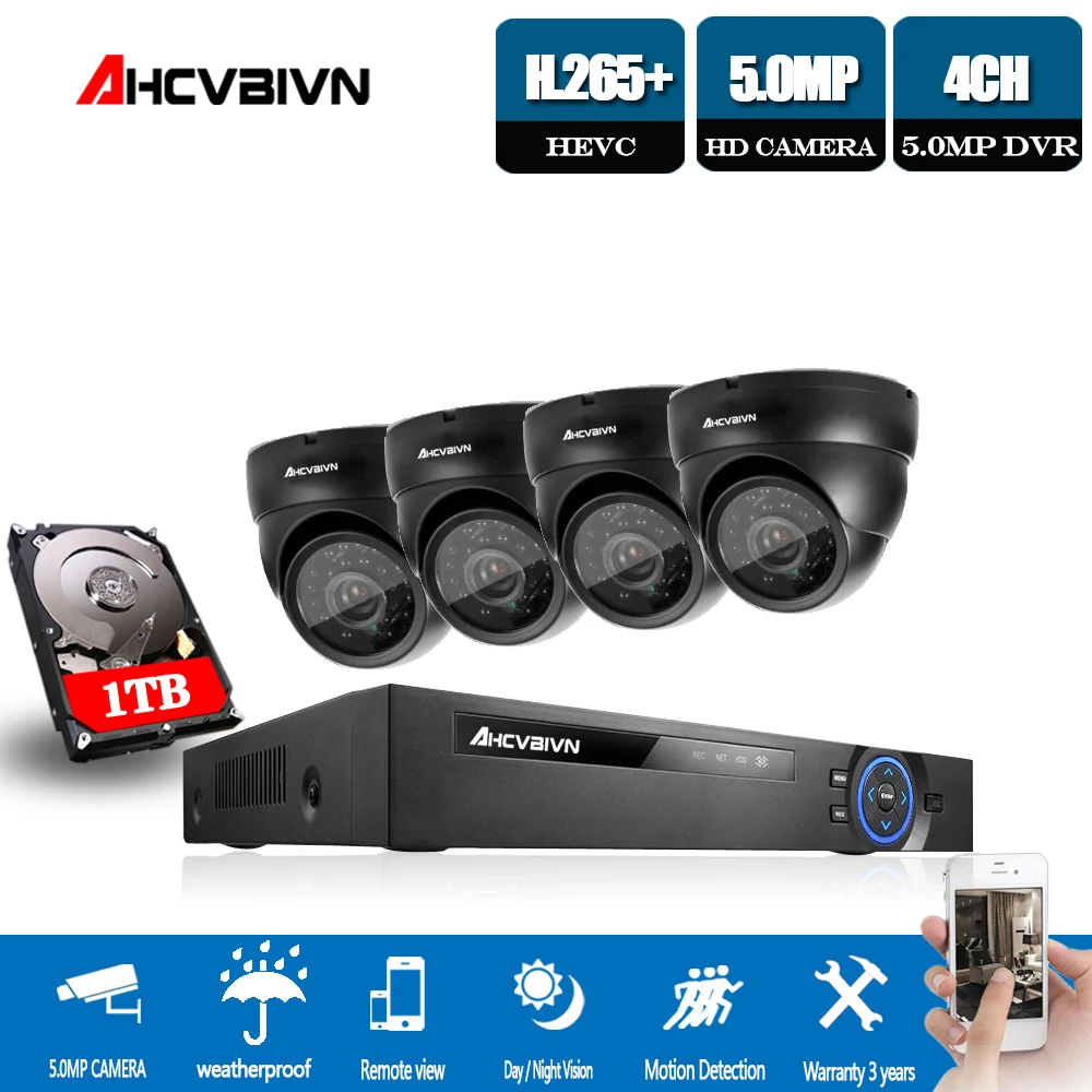 New DVR 5MP CCTV Security System 4pcs MINI Dome ip66 Room Indoor 24pcs IR LED Array 40m Night vision Bu