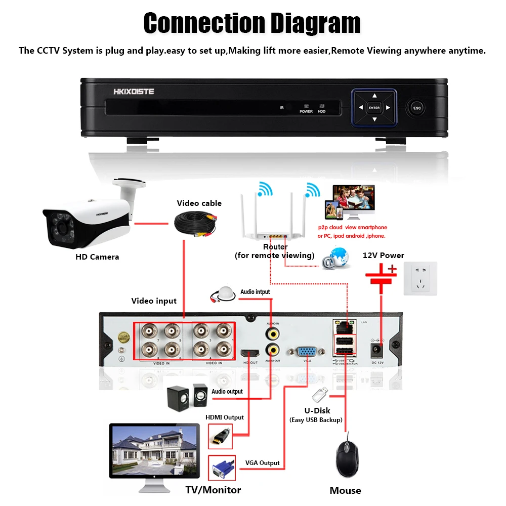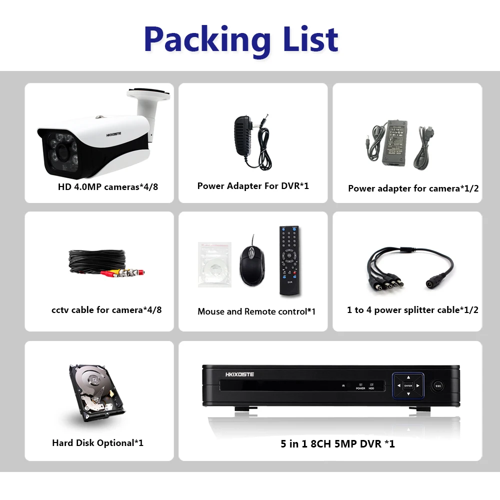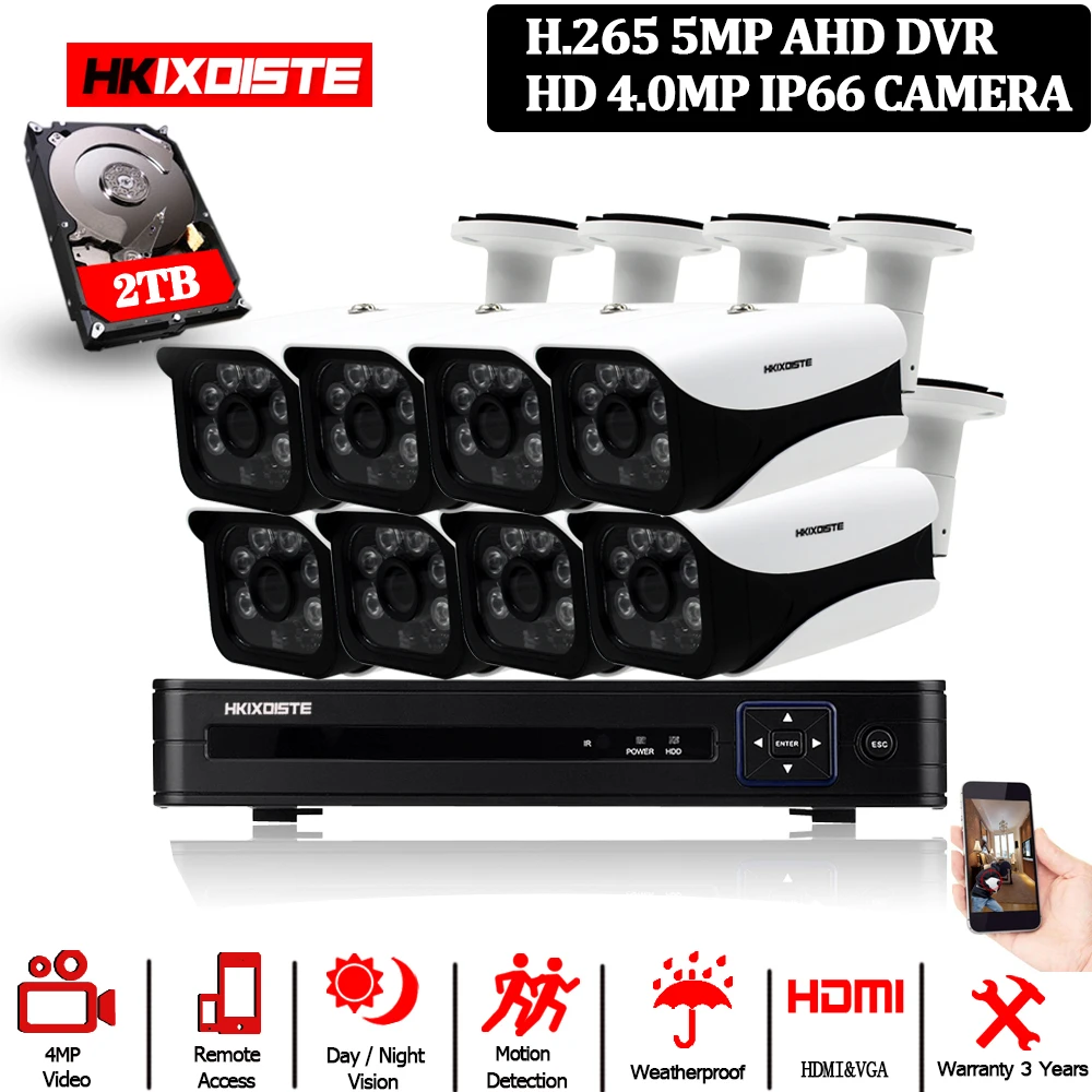 Promo CCTV DVR 5MP 8CH AHD System 6 IR LED headlamp Array 40m Night Vision 3.6mm 70° angle View IP66 HD 4