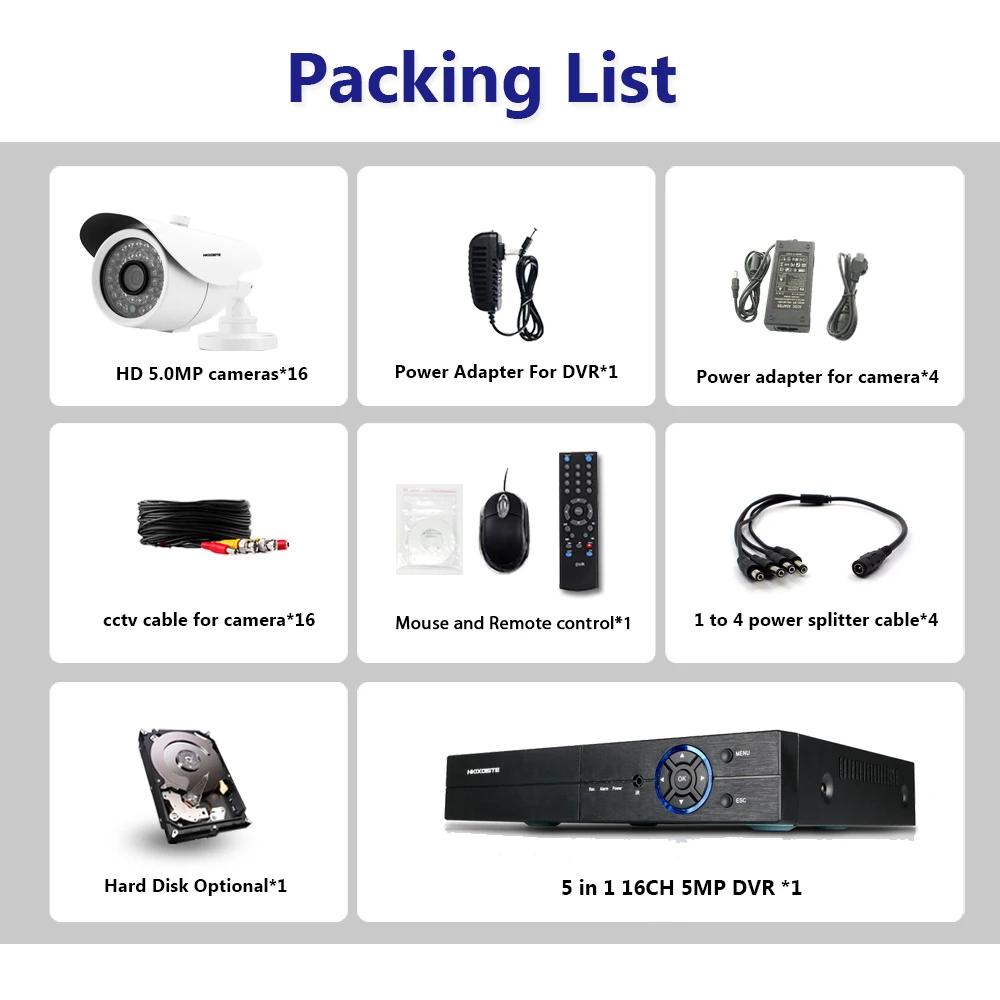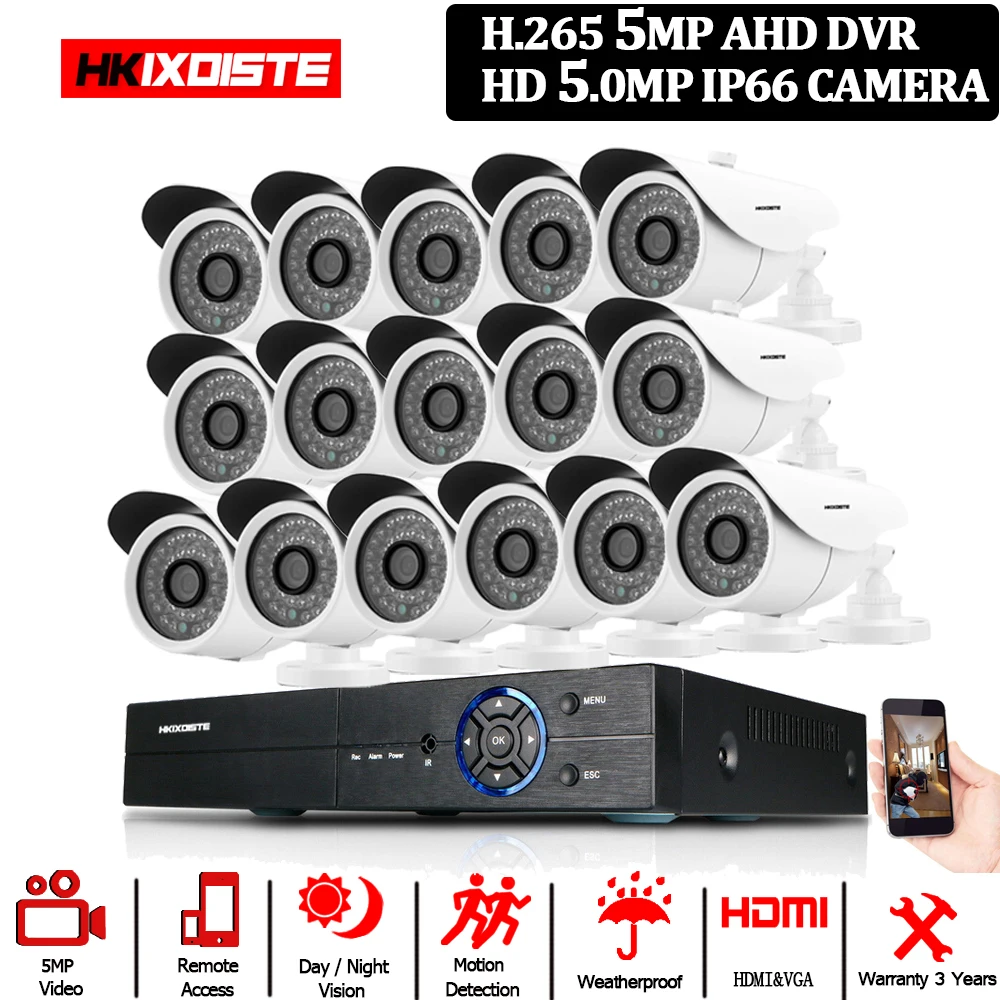 Promo New Arrival H.265 Matrix of SONY IMX335 CCTV Surveillance HD 5MP 16CH System 36 pcs IR LED Array Ea