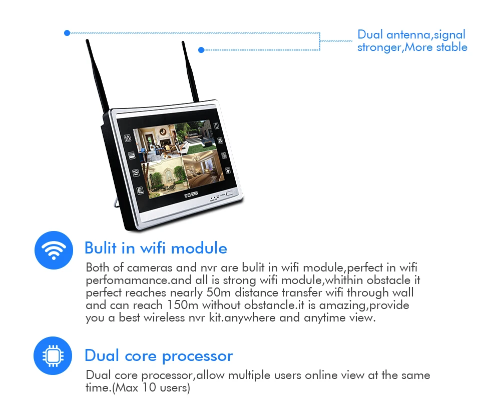 Promo SSICON 8CH 720P 12 Inch LCD Screen Wireless NVR Array IR Waterproof WIFI Bullet IP Camera Security