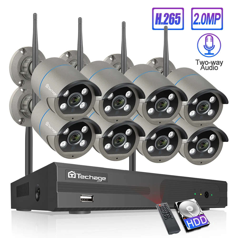 Buy Techage 8CH 1080P Wireless Camera NVR System 4 Array LED 2MP Wifi 2-Way Audio Sound Video Outdoor C