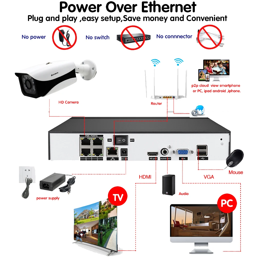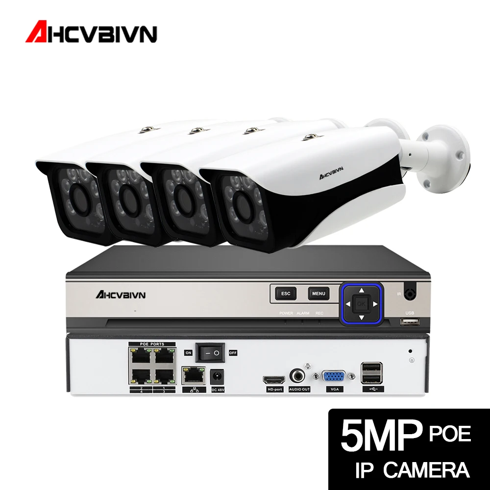 New H.265+ POE 5MP CCTV Security Surveillance 4CH Video sounds System 6PCS IR LED Array SONY Sensor Nig