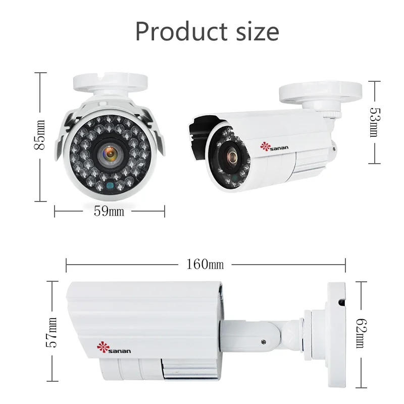 New Sanan HD 1080P Security AHD Camera Outdoor Waterproof 24PCS Array Infrared Night Vision Metal Bulle